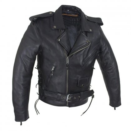Mens Classic Police Style Motorcycle Jacket With Side Laces, Conceal Carry Gun Pockets Zipout Lining